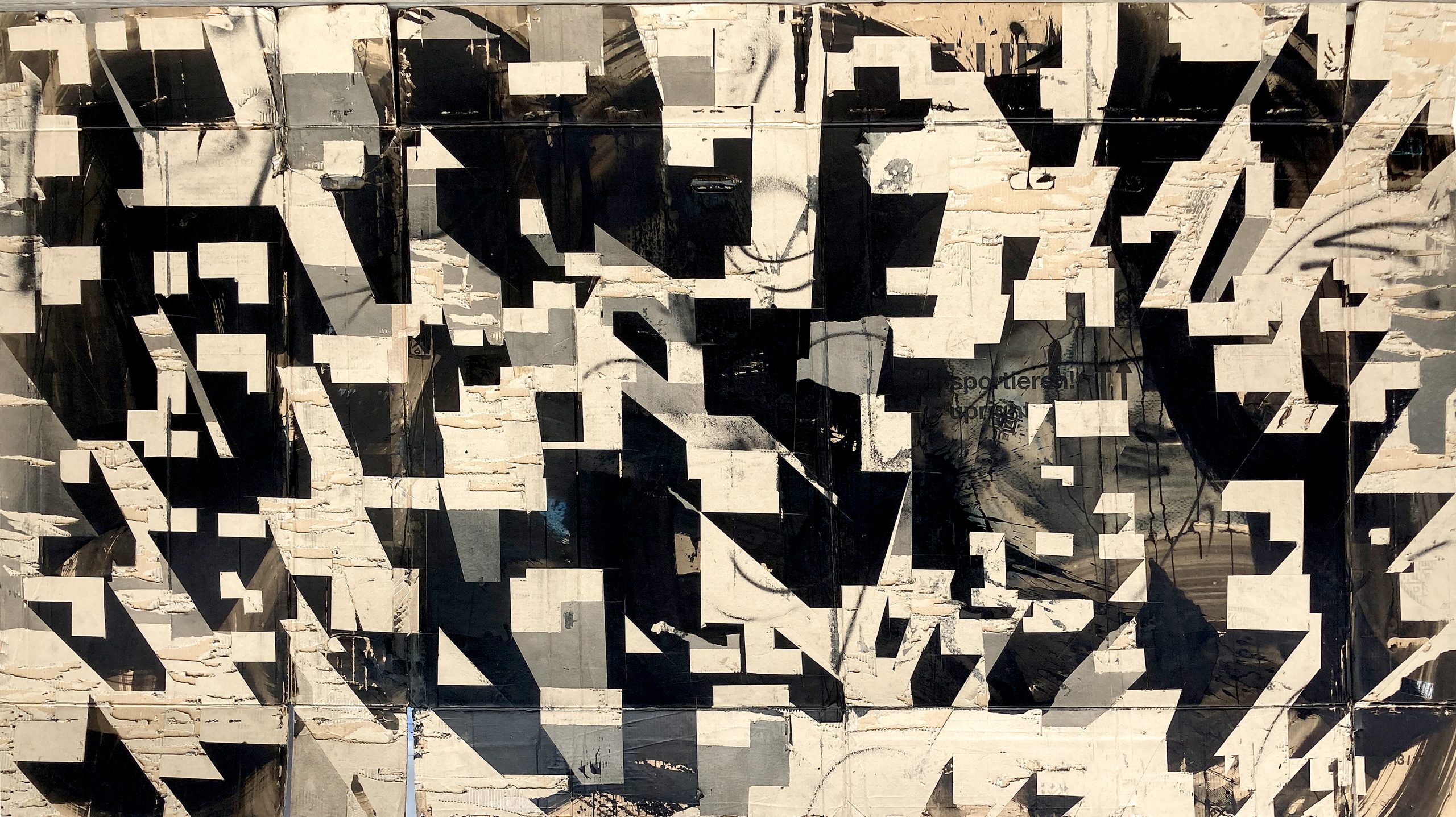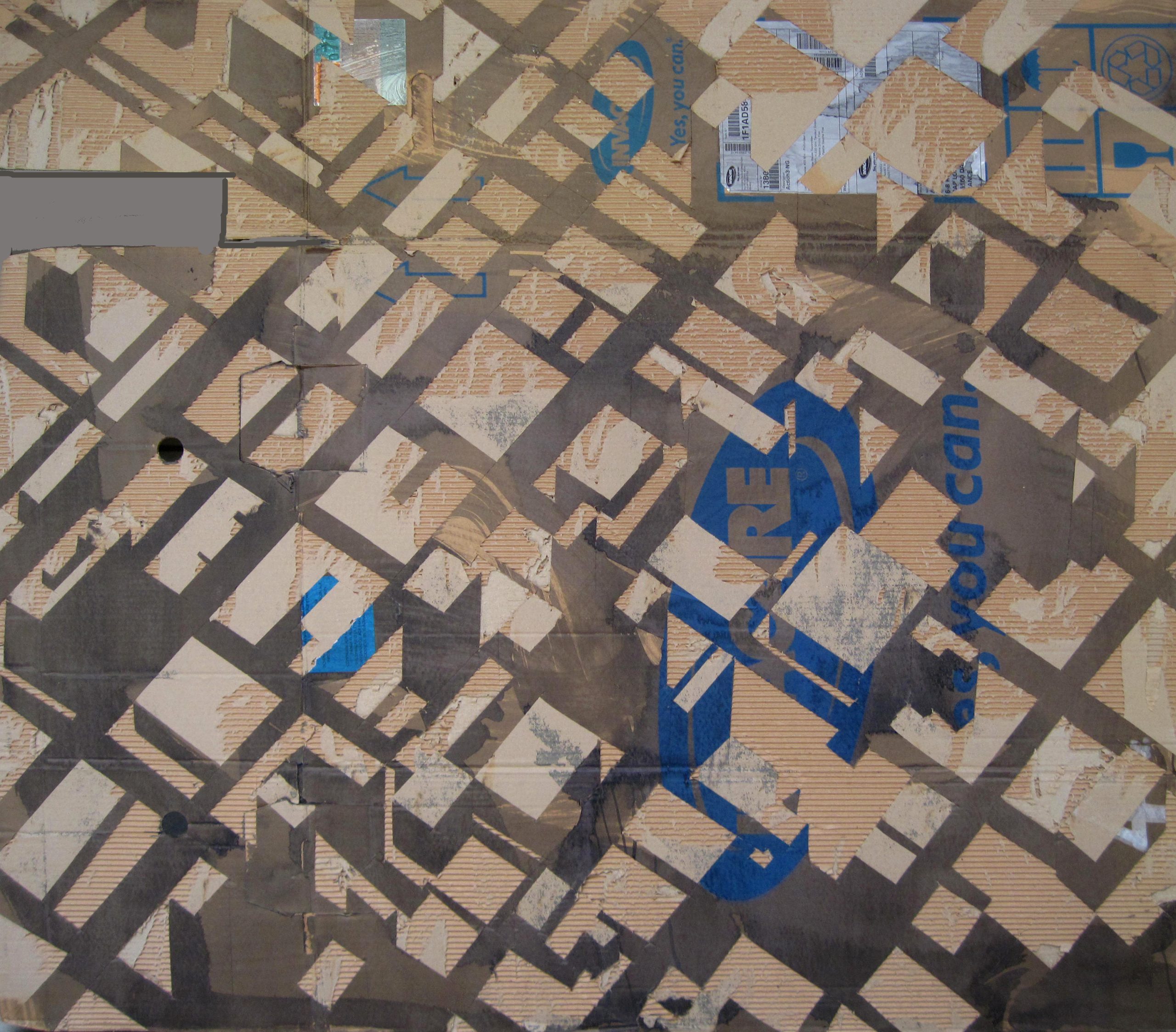 Encres, pigments et peinture acrylique sur cartons d’emballage, 2014/2017.